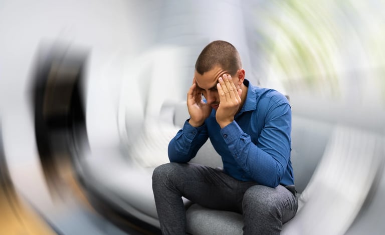 Τα συμπτώματα μπορεί να περιλαμβάνουν αίσθημα περιστροφής, αστάθεια, ναυτία, εμετό ή δυσκολία στη βάδιση. Η σωστή αξιολόγηση είναι απαραίτητη για τη διάκριση μεταξύ καλοήθων και σοβαρότερων αιτίων ιλίγγου.